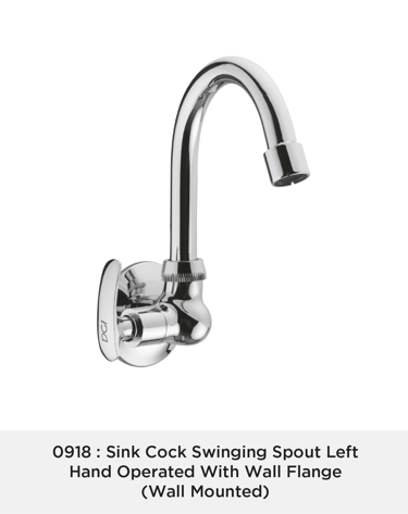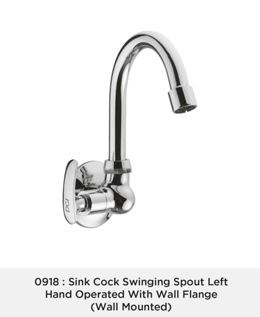 Sink Cock Swinging Spout Left Hand Operated With Wall Flange