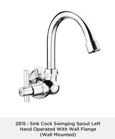 Sink Cock Swinging Spout Left Hand Operated With Wall Flange