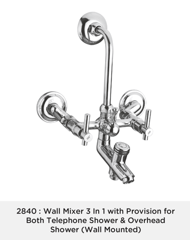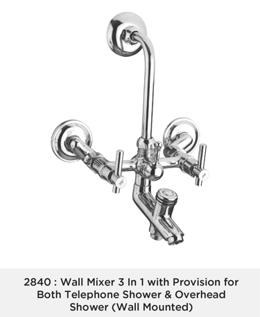 Wall Mixer 3 In 1 with Provision for Both Telephone Shower