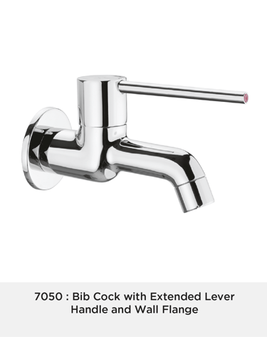 Bib Cock with Extended Lever Handle and Wall Flange